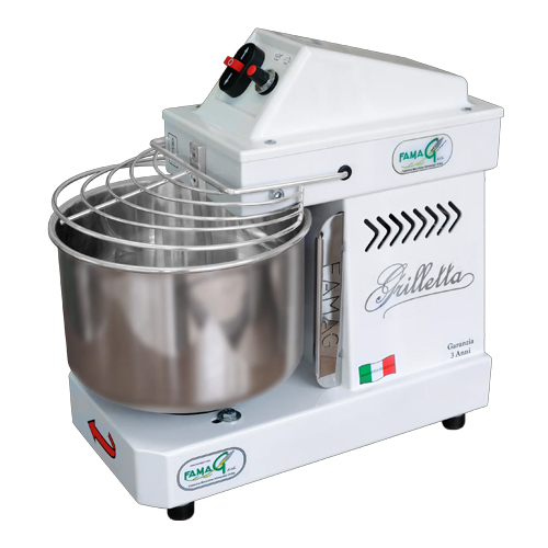 Famag Grilletta IM5/230 10V HH är en kompakt men kraftfull spiralblandare som passar både proffs och seriösa hemmabagare. Den är tillverkad i Italien och erbjuder enastående prestanda för degar med hög vattenhalt – perfekt för luftiga pizzabottnar, focaccia, bröd och andra jästa degar.
