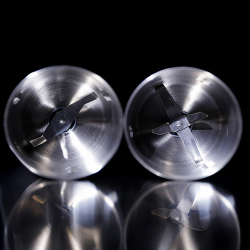 Maskinen levereras med behållare i rostfritt stål och lock – en för torra och en för blöta ingredienser